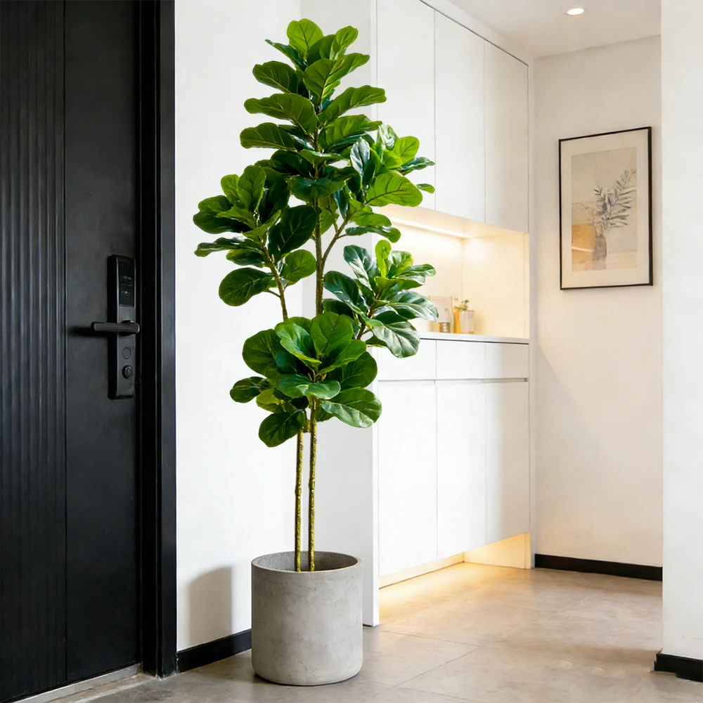 64/122cm Faux Ficus Tree Plant Artificial Oak Tree Tropical Green Fiddle Fig Palstic Banyan Leaf For Home Garden Wedding Decor